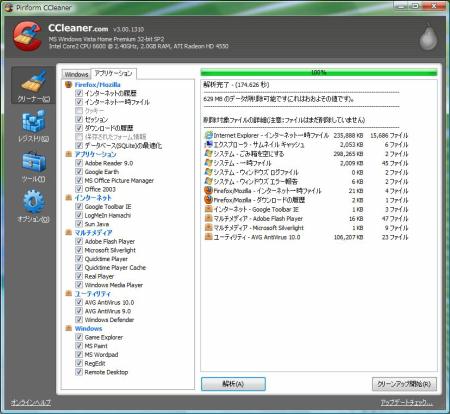 ①Windowsのシステムが使用したファイル、「Internet Explorer」「firefox」の一時保管ファイルなど、「Adobe Reader」「office」「Micorosoft Silverlight」「QuicktimePlayer」「Widows Media Player」「MS Paint」などが作った不要ファイル